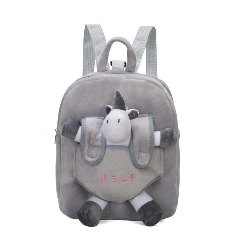 Flamingo Plush Backpack for Kids Pink Grey Small Bag