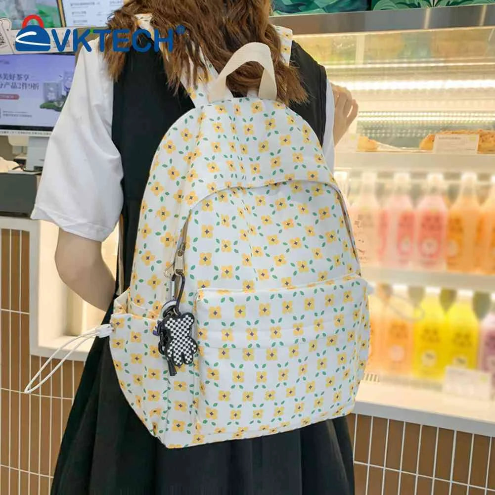 Floral Printed Bookbag Student Rucksack Nylon Daypack for Girls