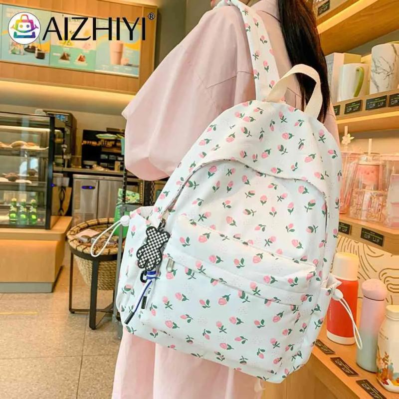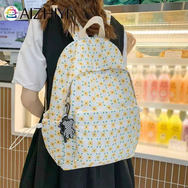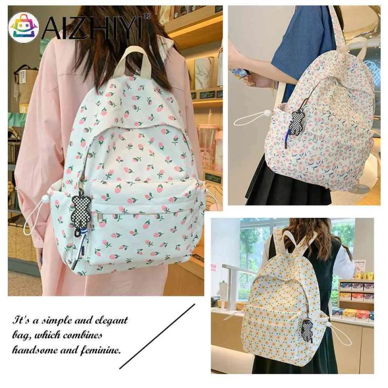Floral Printed Bookbag Student Rucksack Nylon Daypack for Teenagers