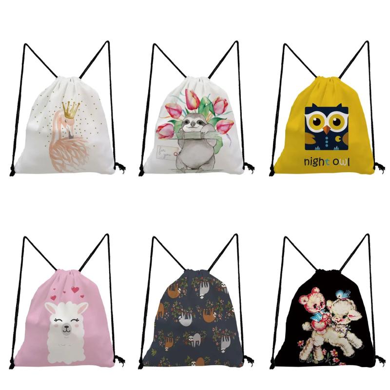 Floral Sloth Printed Backpack Animal Drawstring Bag Travel Bag