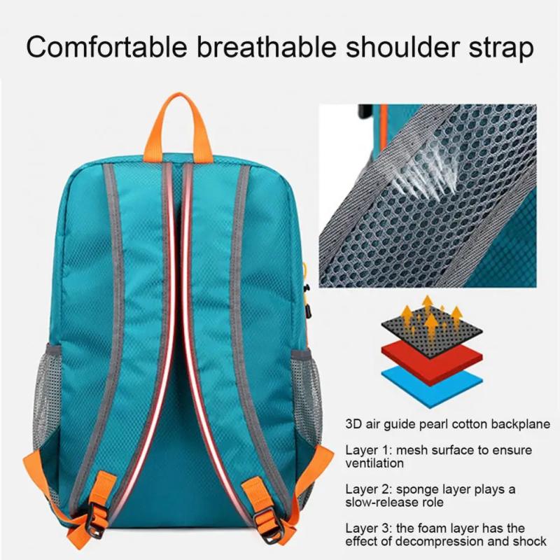 This outdoor foldable backpack is designed for hiking and sports activities. It has a large capacity and features a mesh pocket for convenient storage. The backpack is made with anti-scratch material and has a strong load-bearing capacity for all your essentials. When not in use, it can be easily folded for compact storage.