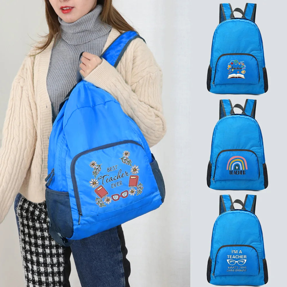 Foldable Teacher Print Daypack Bag - Lightweight Outdoor Travel Backpack