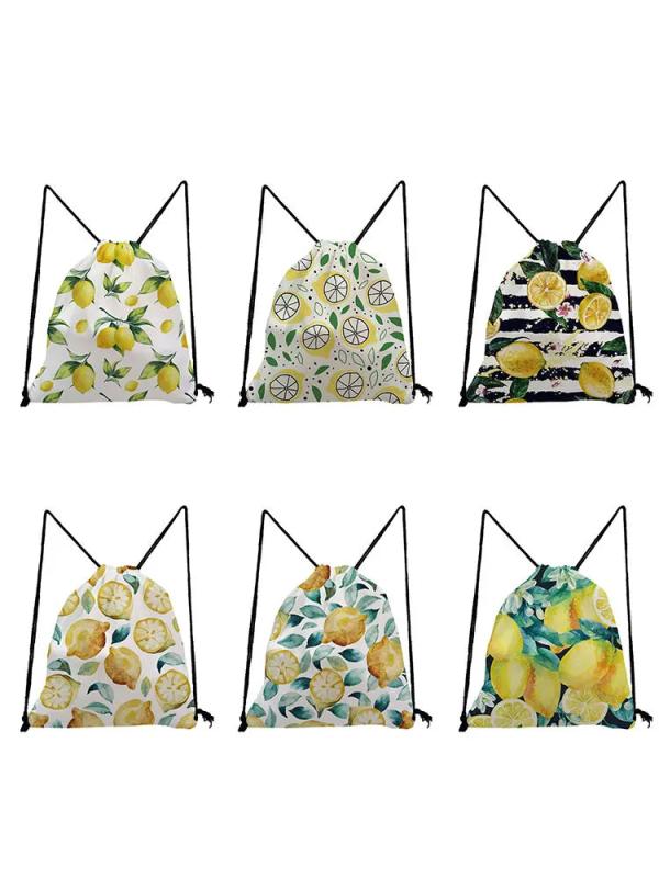 Fruit Backpack Lemon Print Teenager Drawstring Bag Lady Storage Bags