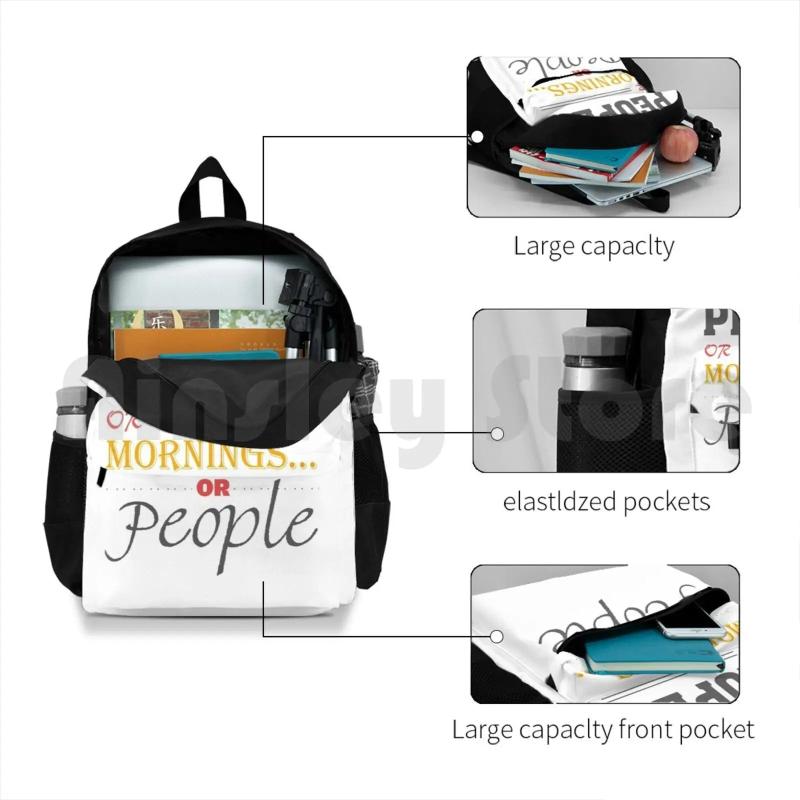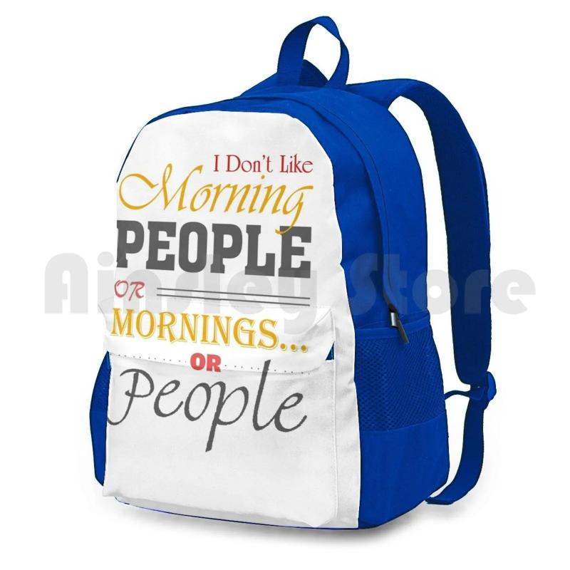 Get a good laugh with this backpack featuring a design that says 'I Hate Morning People'. Perfect for outdoor activities like hiking, riding, climbing, and more.