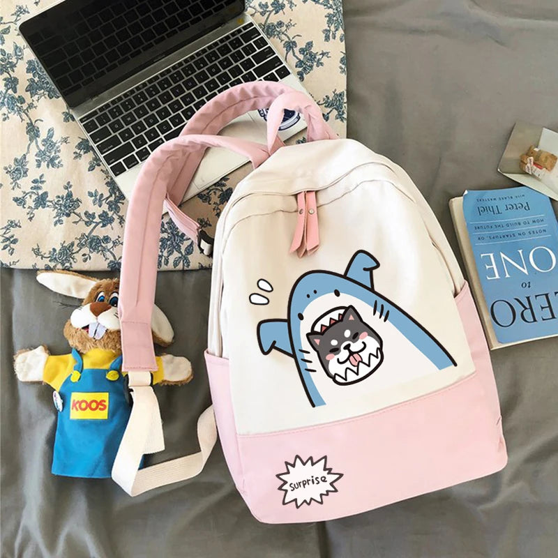 Get ready to make a splash with this creative animal-themed backpack that features a shark with a Japanese husky twist. Perfect for students looking for a unique and fun way to carry their school supplies.