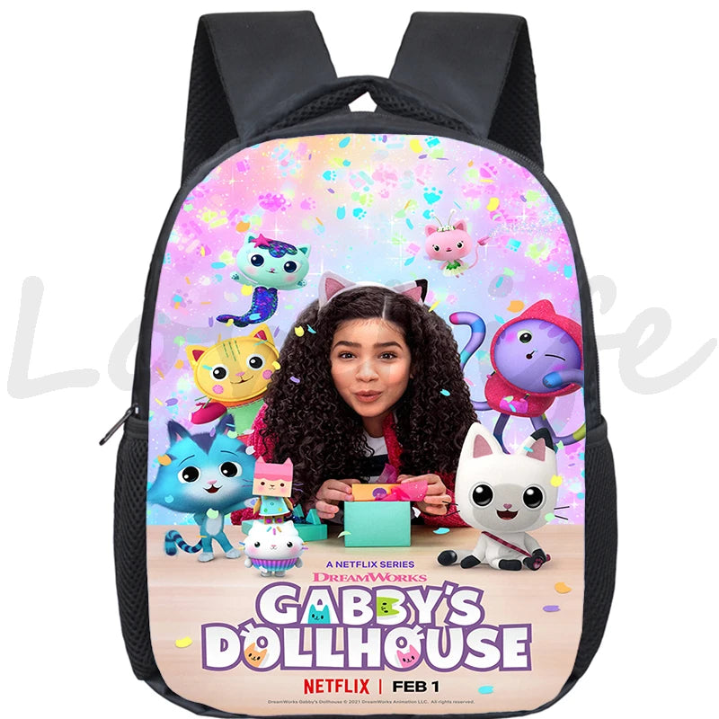 Adorable Gabby Dollhouse backpack featuring cats design. Perfect for school and daily use. Suitable for boys and girls.