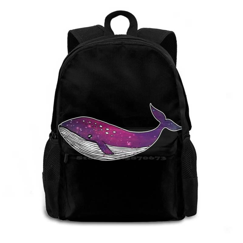 This backpack features a beautiful design of a whale swimming in a starry sky ocean. It's spacious and perfect for travel or daily use.