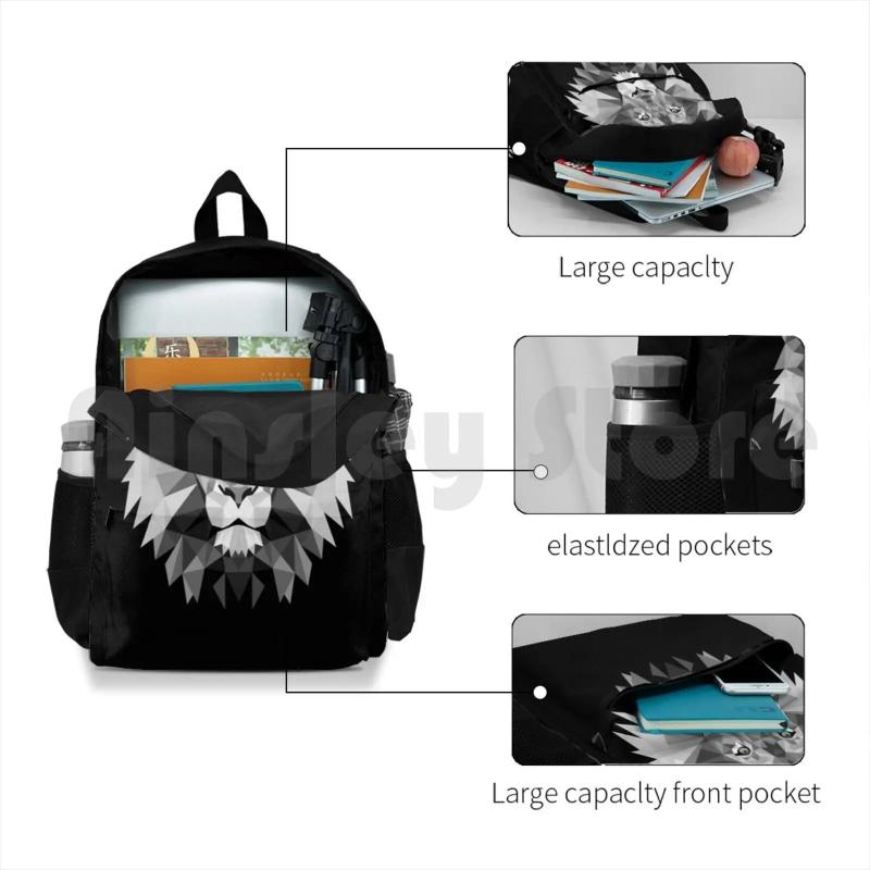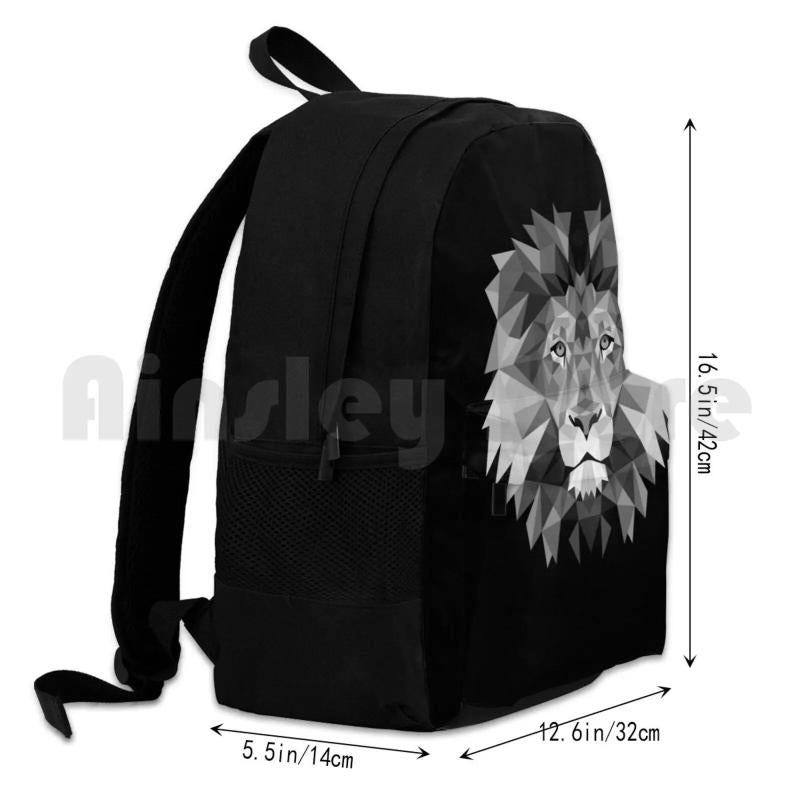 Stay wild and futuristic with this geometric monochrome lion-themed outdoor sports backpack, perfect for hiking, riding, climbing, and more.