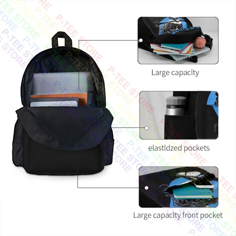 This backpack is perfect for gym, creative shopping, and carrying clothes. It features a unique design with a leather skeleton rock n roll music band theme.