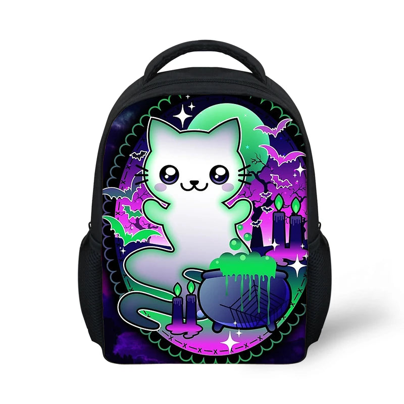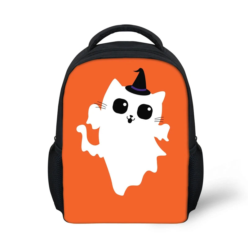 Ghost Cat Print Kids School Backpack Halloween Mochila Escolar