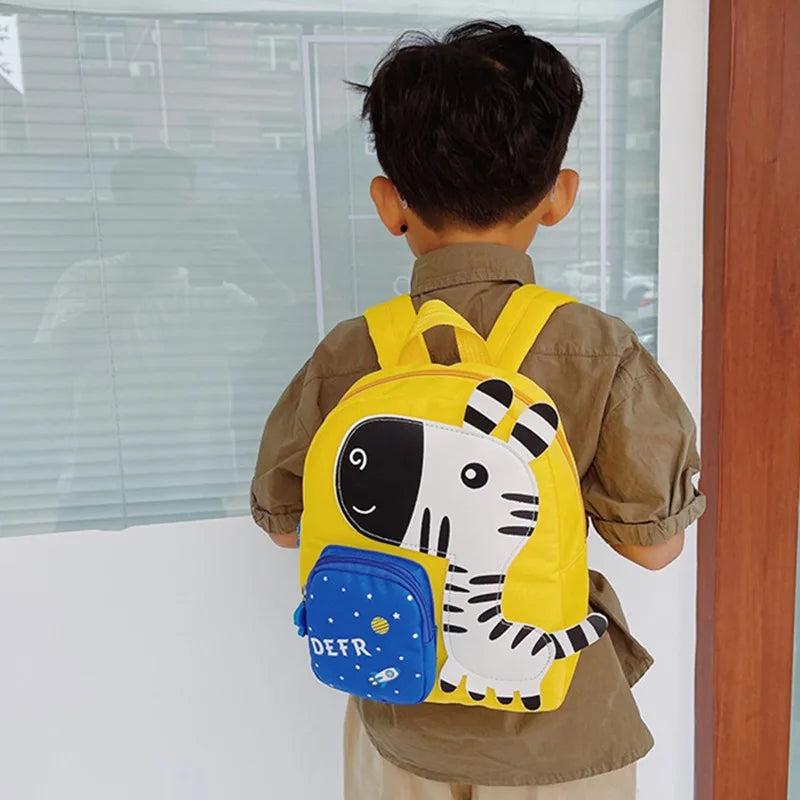 Adorable giraffe design backpack for kindergarten children. Made of durable canvas material. Perfect for school or travel. Adjustable straps for a comfortable fit. Ideal gift for kids.