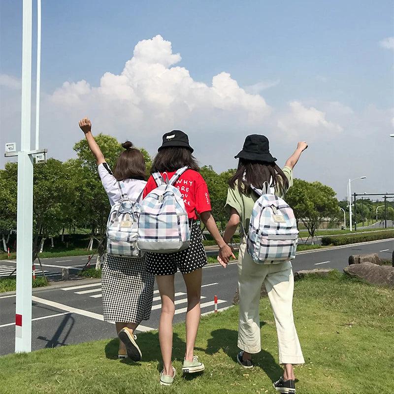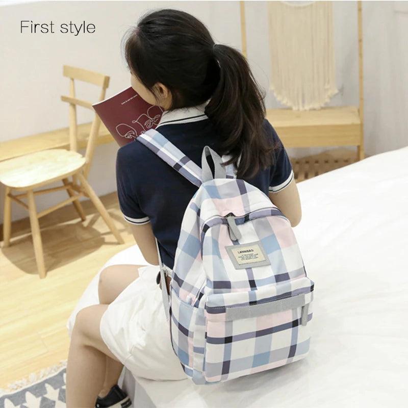 Girl Plaid Backpack Lady Travel Backpacks College Style Shoulder Bag