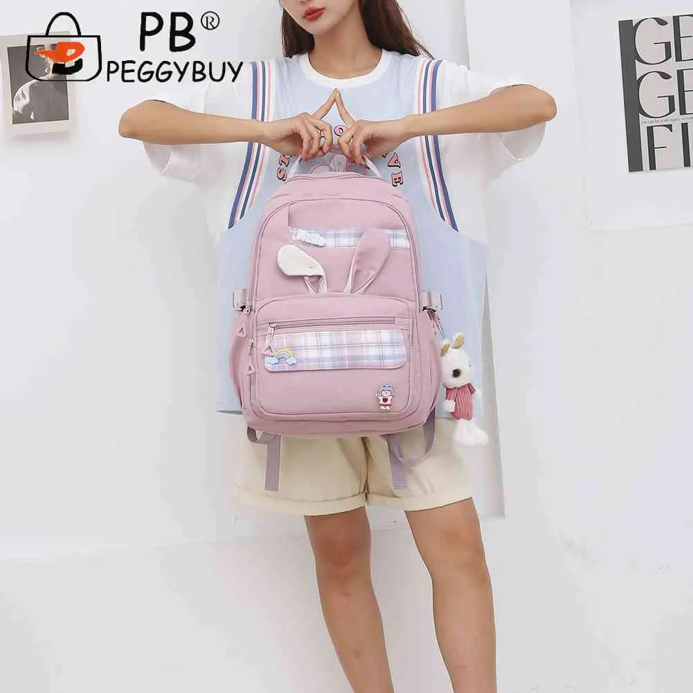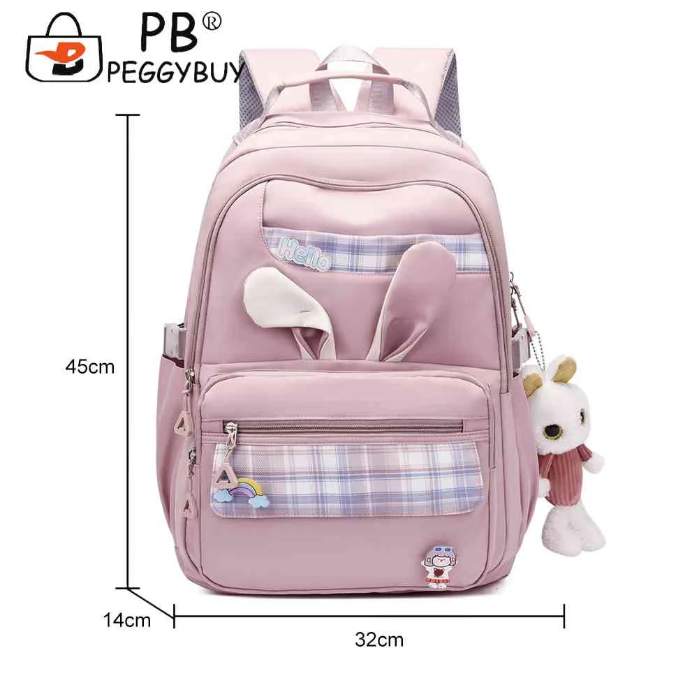 Girl Rabbit Student Backpack Large Capacity Travel Book Backpack Plaid