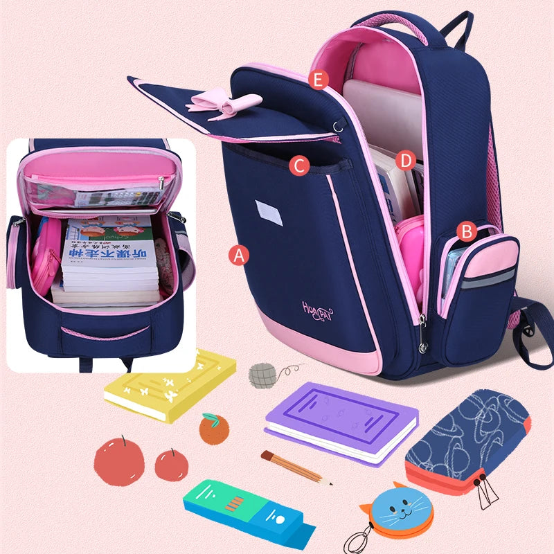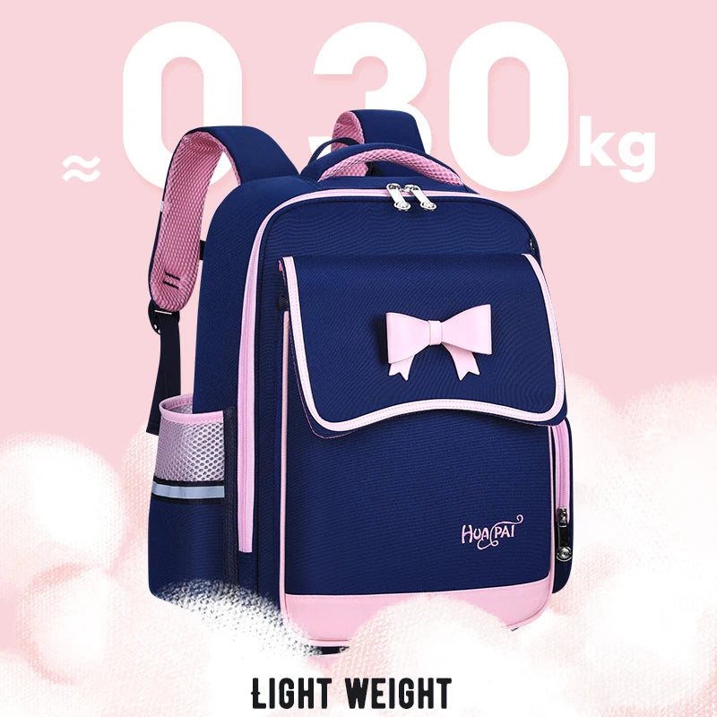 This adorable school bag is designed for girls aged 6 to 12 years. It features a cute bowknot and spacious compartments, making it perfect for carrying books and school supplies.