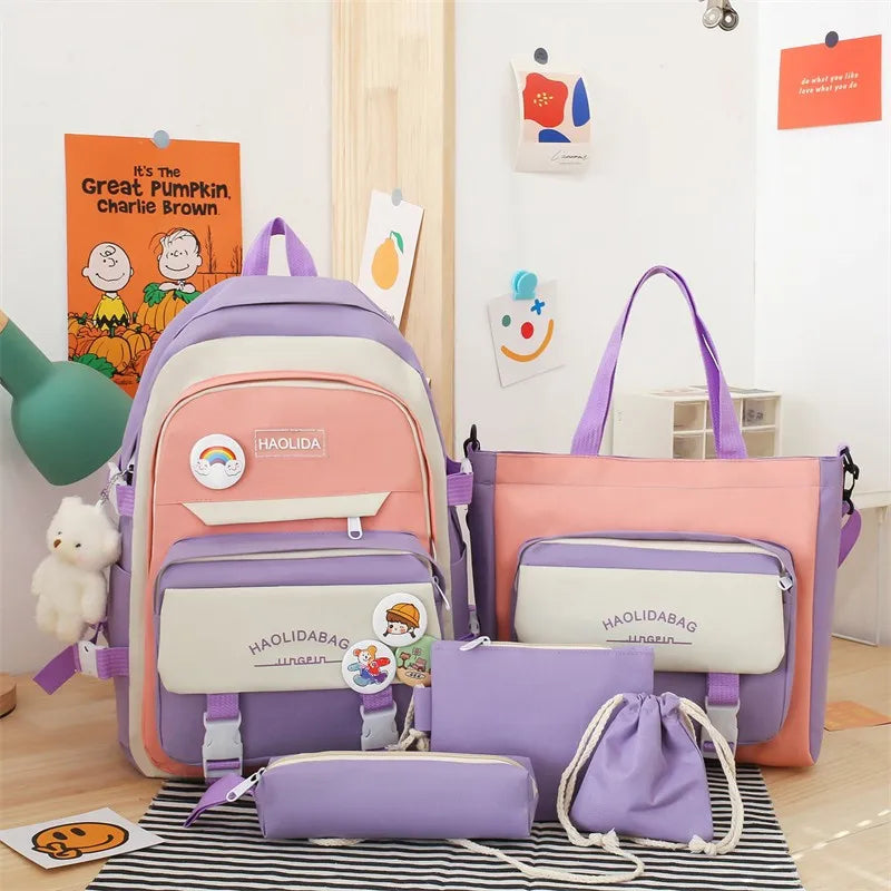 Girls Campus School Bag Set Large Capacity Backpacks for Students