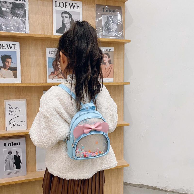 Adorable transparent jelly backpack with a sparkly sequined bow, fit for a little princess.