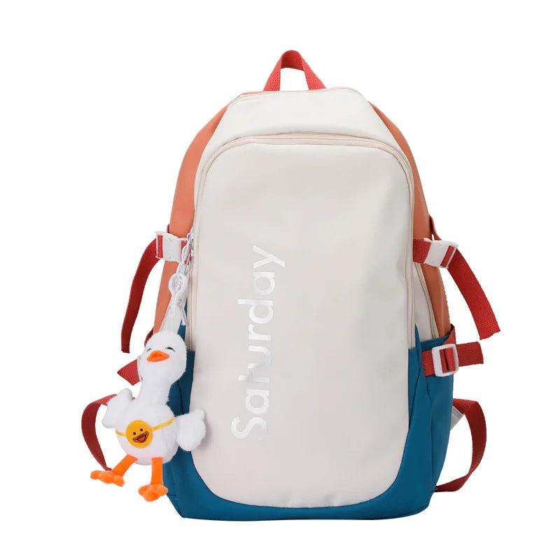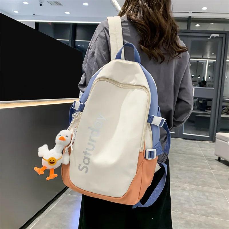 This schoolbag is perfect for primary school girls and college students. The contrast design adds a stylish touch to the durable bag.