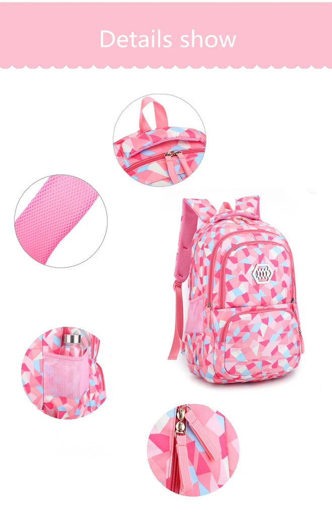 This stylish school bag is perfect for girls and features a waterproof design. It is lightweight and ideal for carrying books and other essentials.