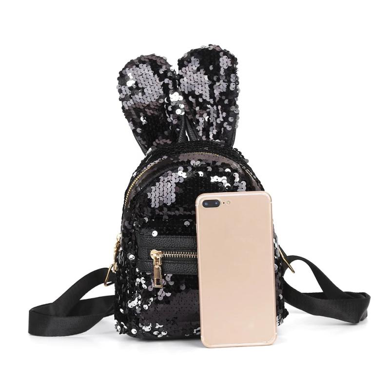 Glitter Backpack Kids Girls Boys Rabbit Ears Sequin Backpacks Knapsack