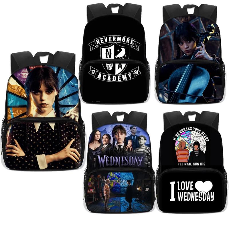 This Wednesday Addams and Enid Children School Bag is perfect for students who love the gothic style. It's a great gift for fans of Nevermore Academy.