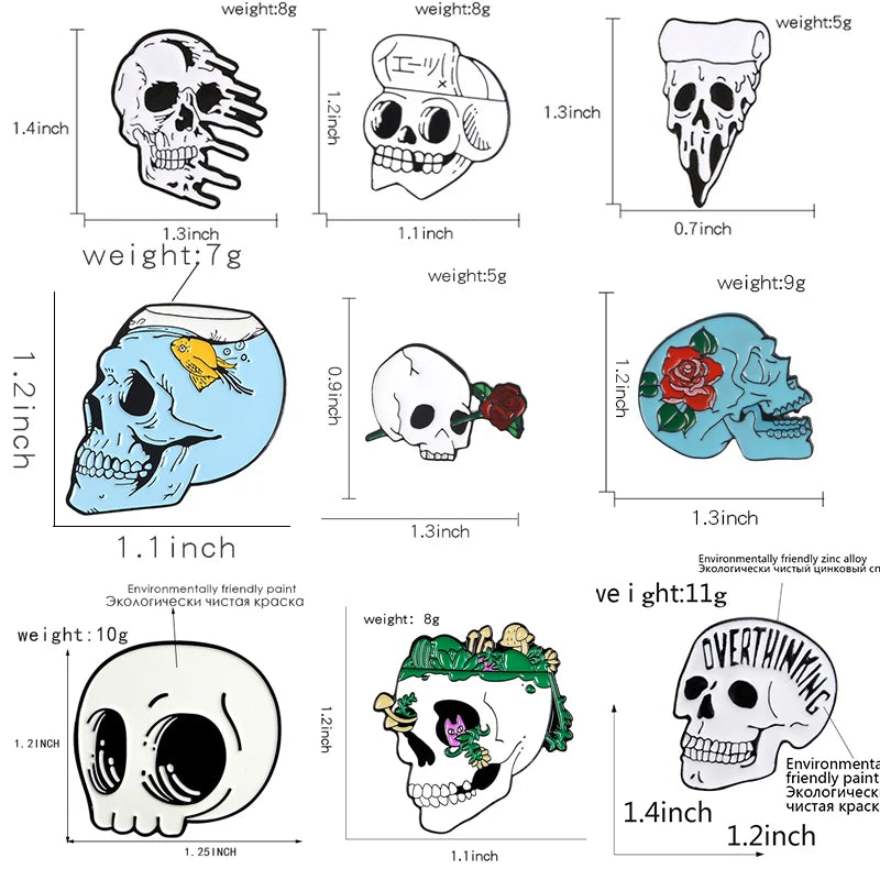 Elevate your Halloween look with this classic punk skull enamel brooch collection. Perfect for backpacks, hats, or any accessory. Ideal gift for friends.