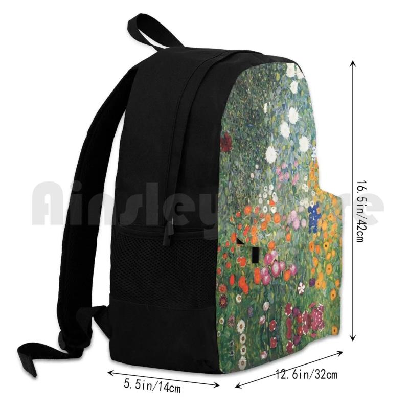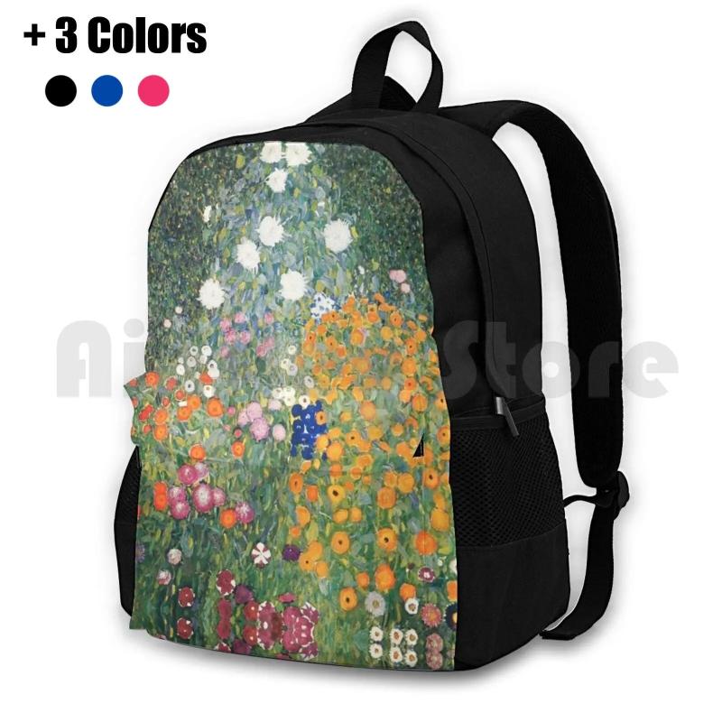 Gutav Klimt Flower Garden Painting Outdoor Hiking Backpack