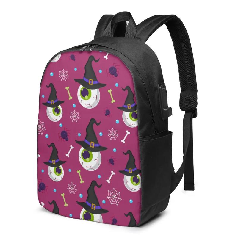 Halloween Eyeball Student School Bag USB Charge Laptop Back Pack
