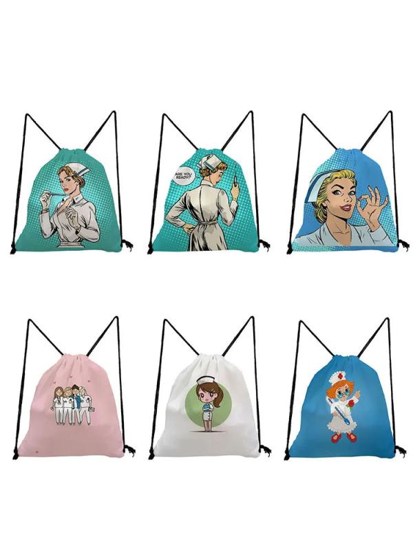 High Capacity Drawstring Bag Nurse Thermometer Print Backpack