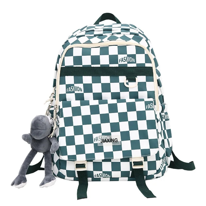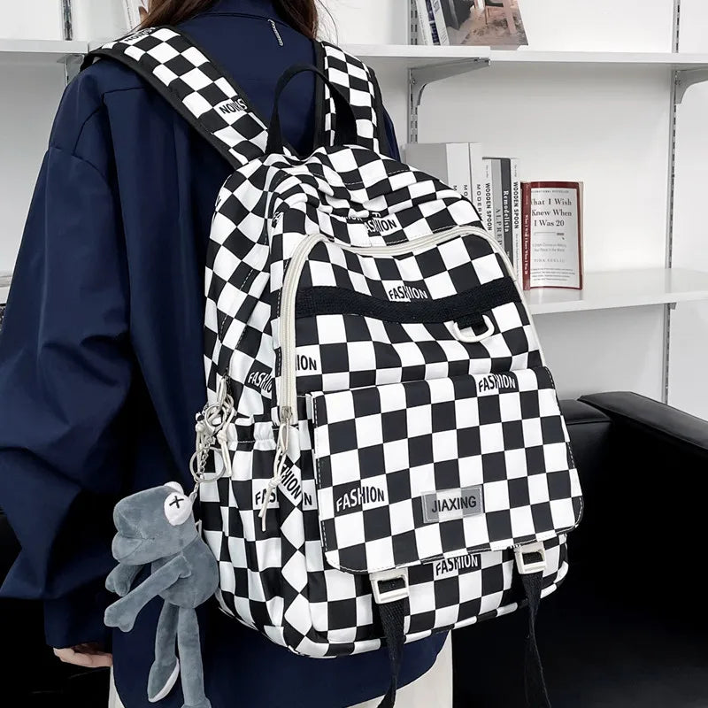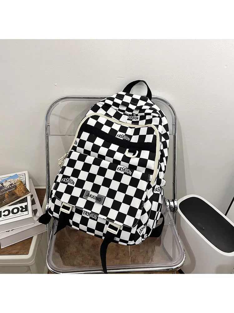 This trendy backpack is perfect for female college students, featuring a unique Hong Kong wind checkerboard design. It's ideal for leisure and school use.