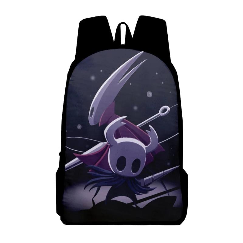 This Hollow Knight backpack features a unique 3D print design, perfect for anime fans. The bag is suitable for students and is unisex, making it a versatile choice for casual school use.