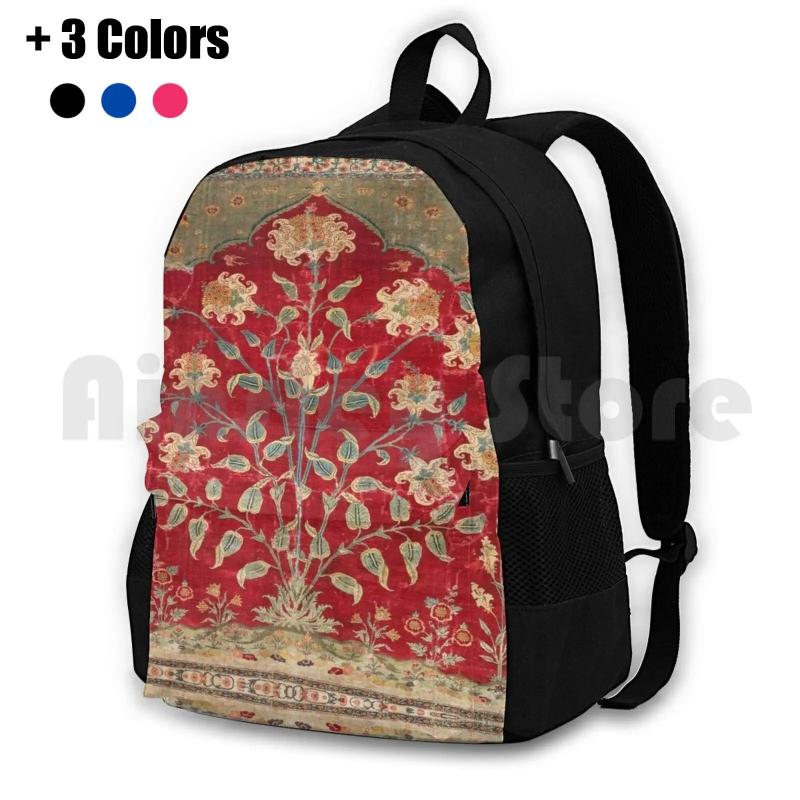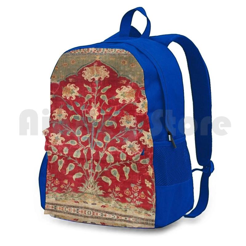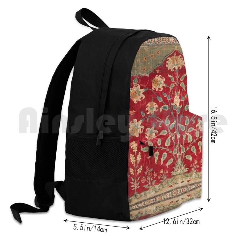 Take a piece of history with you on your outdoor adventures with this 17th-century Indian floral rug art print backpack. Perfect for hiking, riding, climbing, and other sports activities.