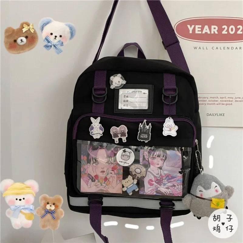 Japanese-style girl backpack with transparent pocket