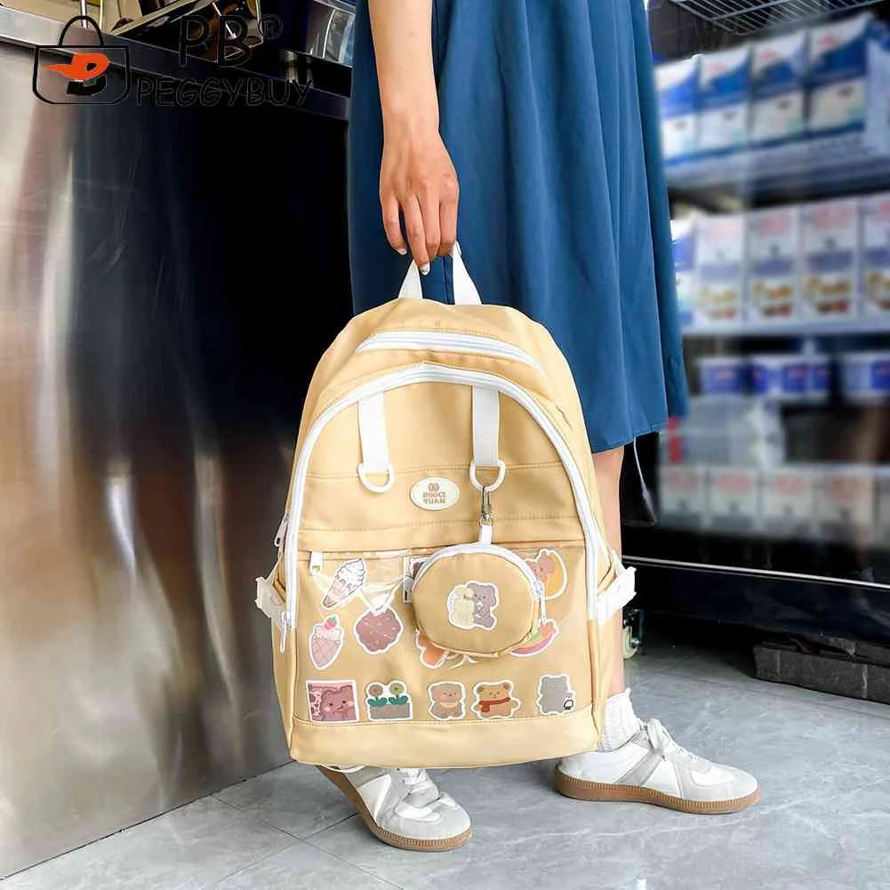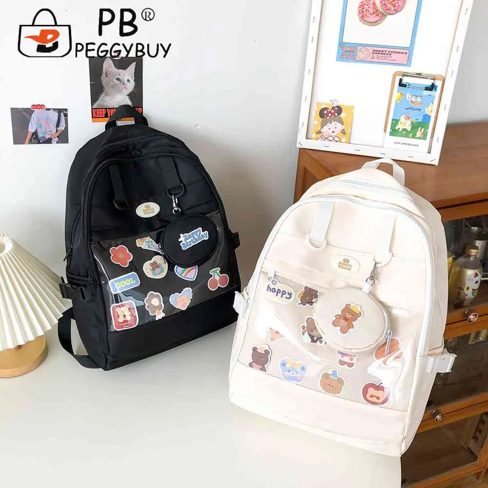 This Ita Bag Backpack combines Japanese preppy style with a touch of humor. The transparent design allows you to display your favorite pins, keychains, and other treasures. It's perfect for travel, school, or everyday use with its large capacity and senior bag quality.