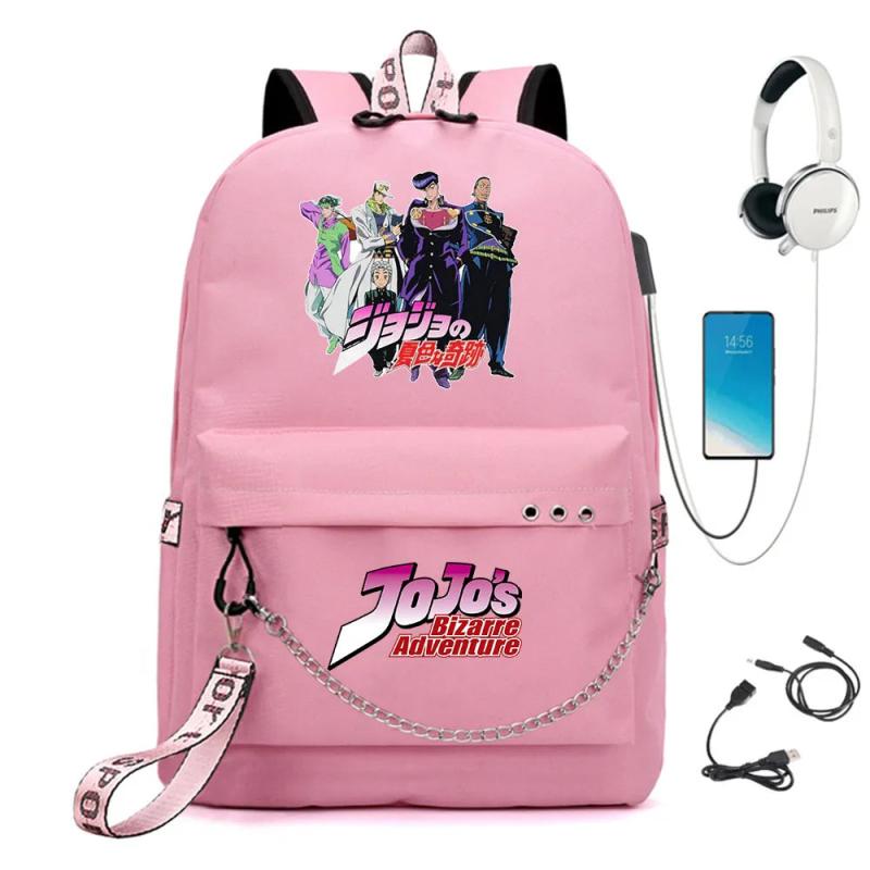 JoJo's Bizarre Adventure Nylon Backpack USB Schoolbag Cartoon Student Laptop Bag