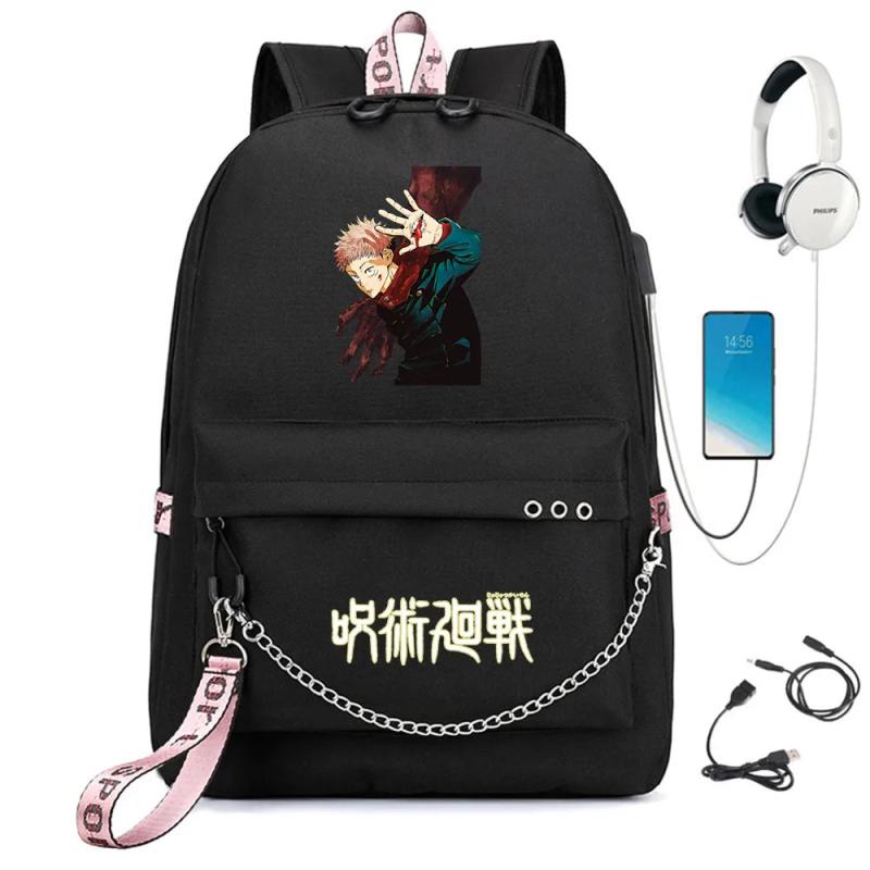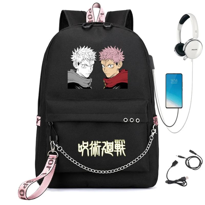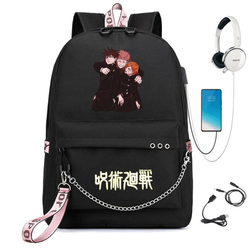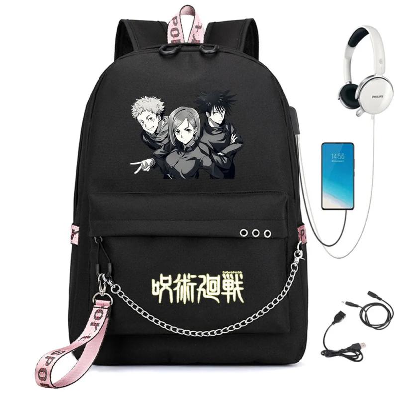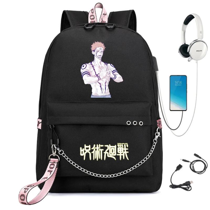 Jujutsu Kaisen Backpack USB Charge Schoolbag Cartoon Teenger Travel Bag