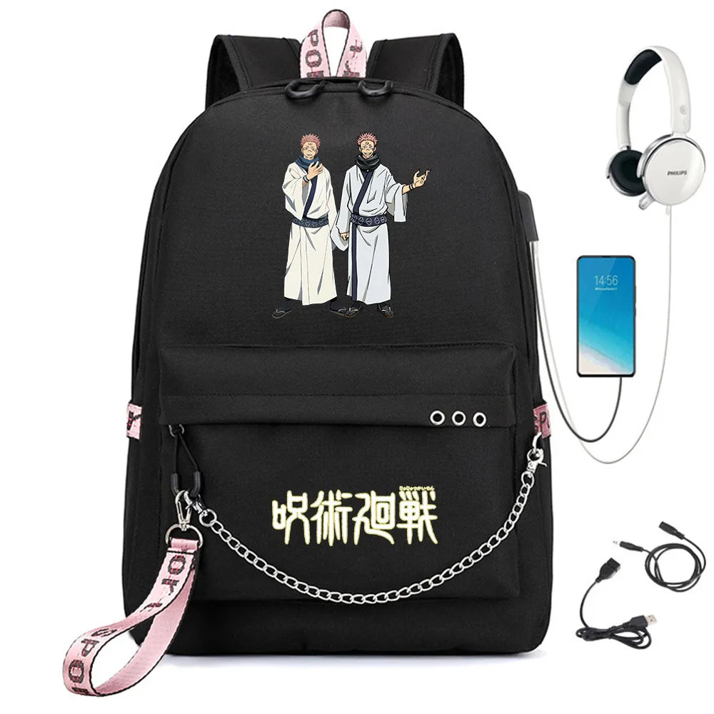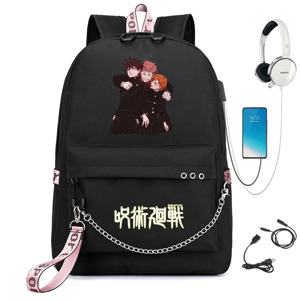 Jujutsu Kaisen Backpack USB Charging Headphone Student Schoolbag
