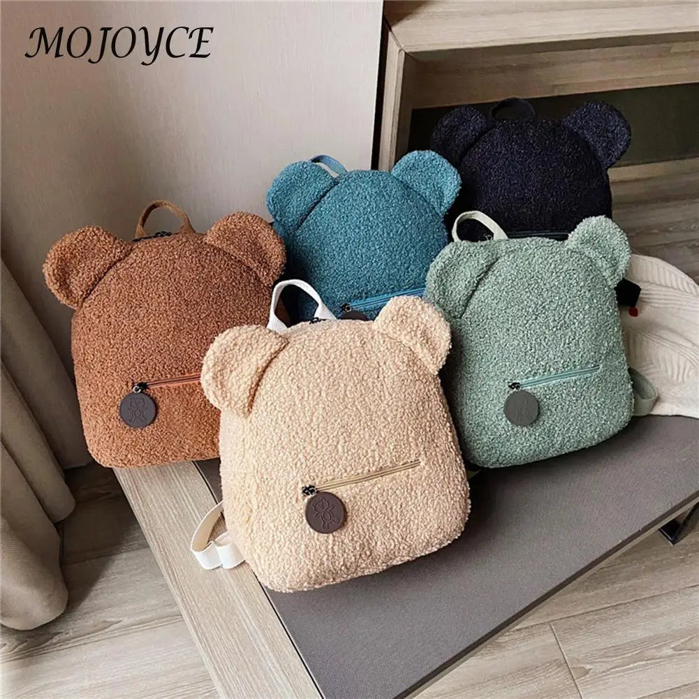 Kids Bear Ear Fleece Backpack for Boys Girls Mini Travel Rucksacks