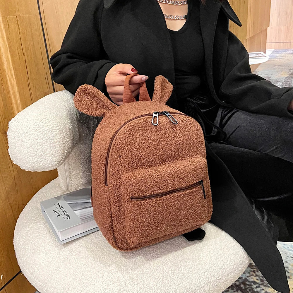 Kids Bunny Ear Plush Backpack Warm Fleece Daypack