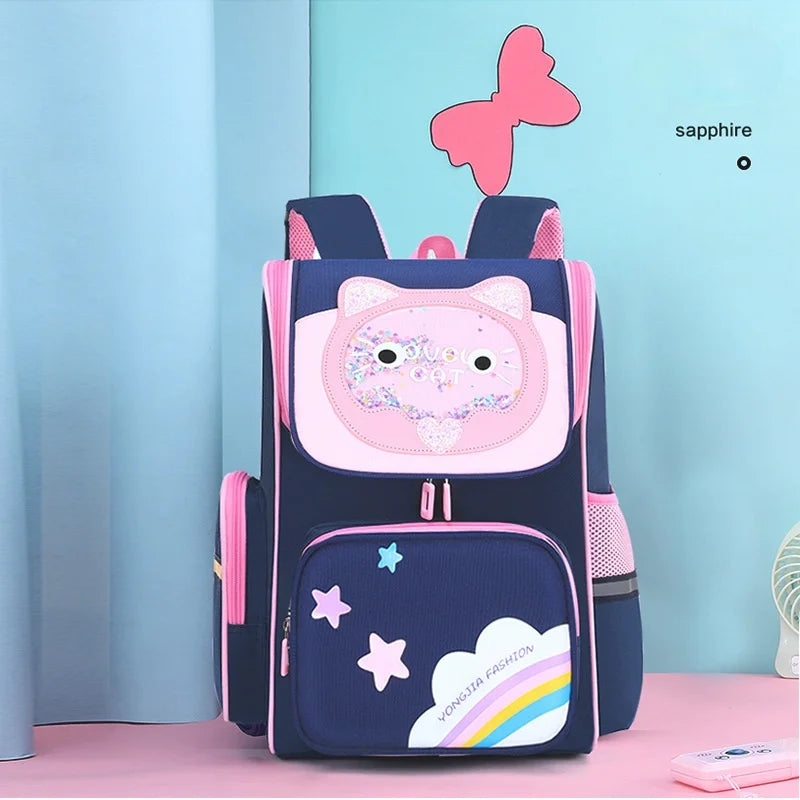 Kids Cartoon School Bag Waterproof Nylon Girl Orthopedic Backpack