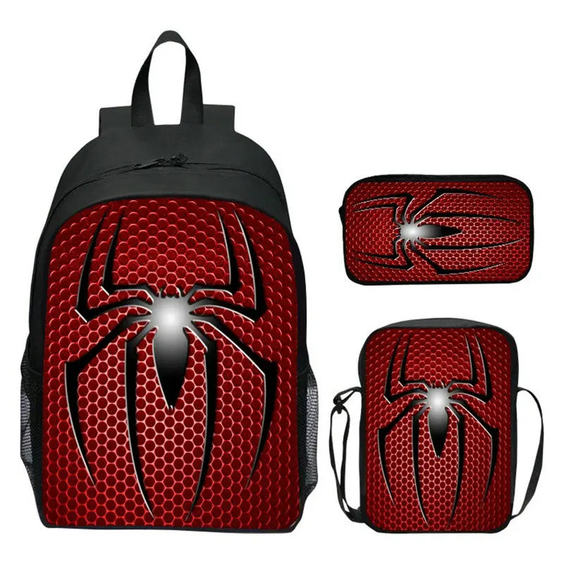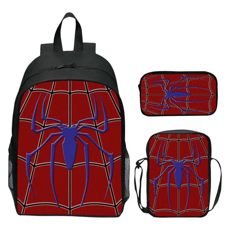 Kids Spider School Bag Anime Waterproof Nylon Outdoor Sport Bag 3pcs Bookbag