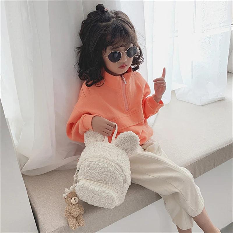 This adorable backpack is perfect for toddlers with its bunny ear design. Made from winter warm fleece, ideal for kindergarten, school, outdoor travel, and more.
