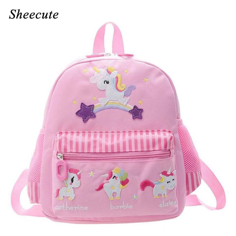 This cute and colorful backpack is perfect for kindergarten children. It features a cartoon unicorn design that kids will love.