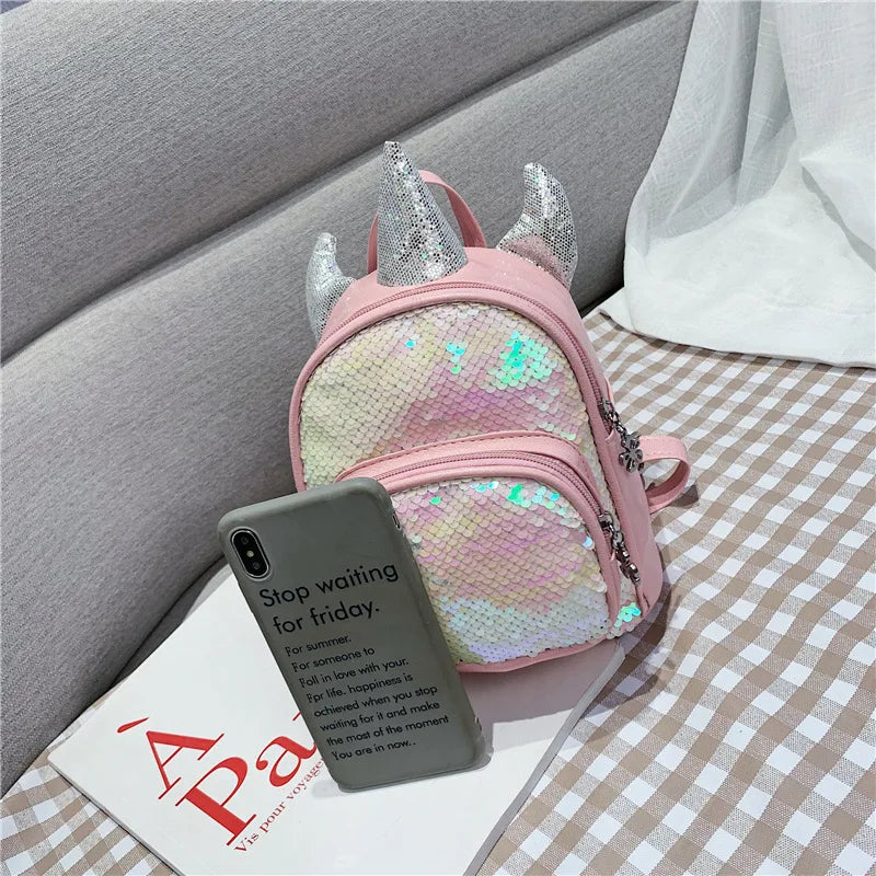 Adorable mini backpack for little girls, made of PU leather with sequins. Perfect for kindergarten kids to carry their belongings in style.
