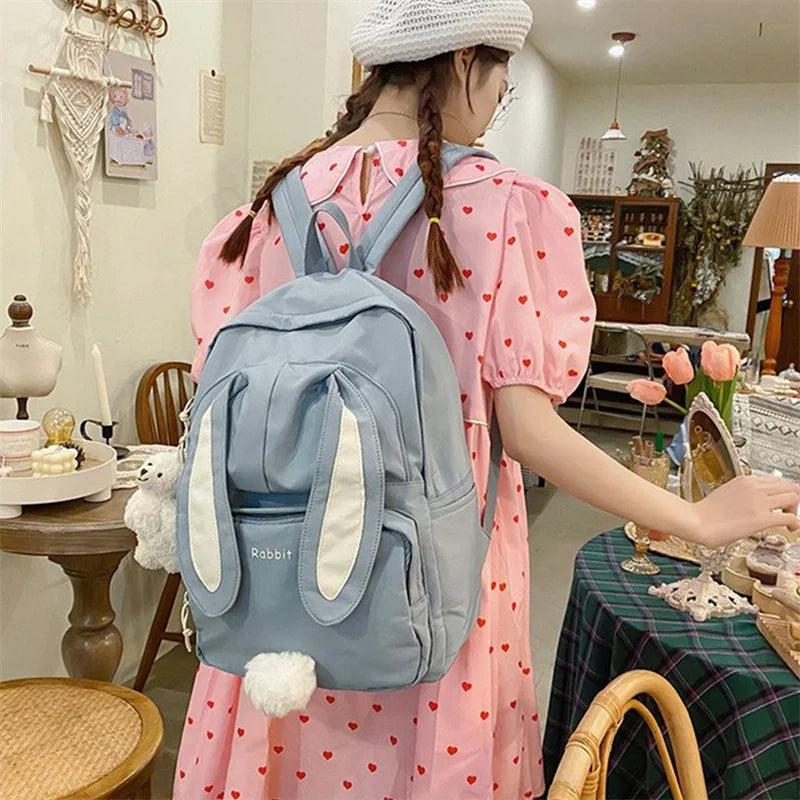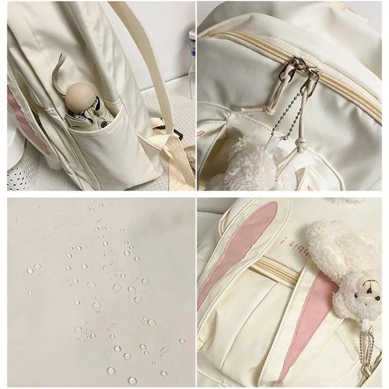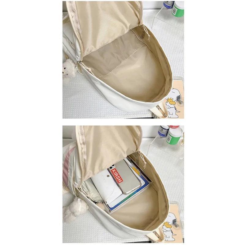 Large Backpack w/ Bear Pendant Pockets for School Teen Girls