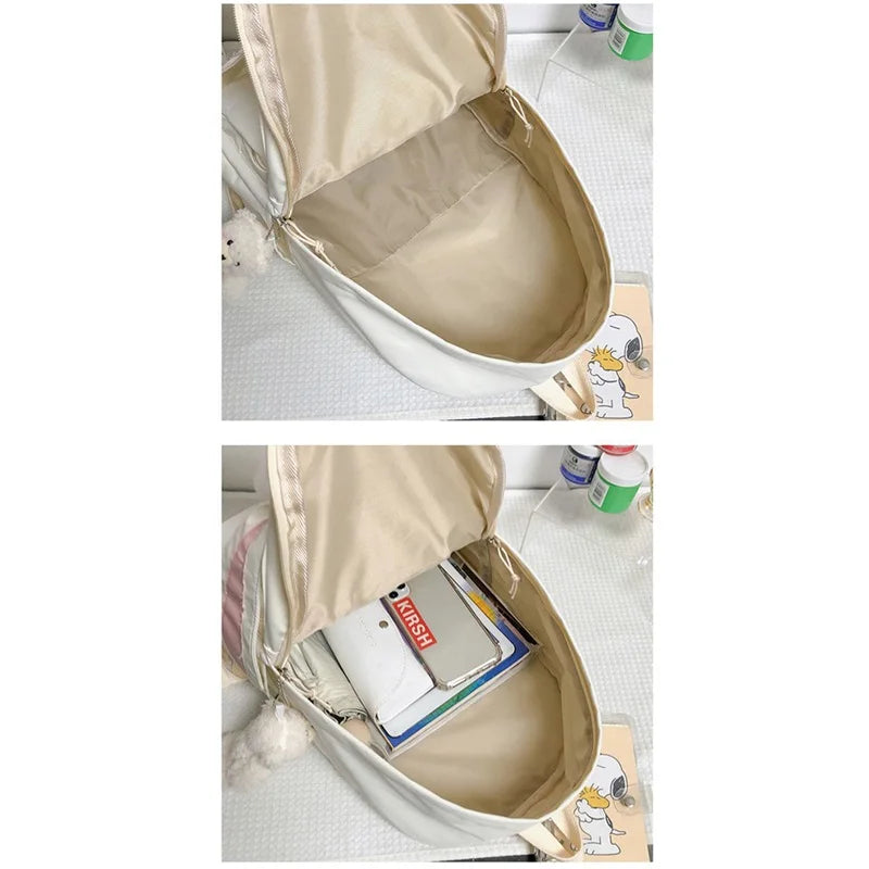Stay organized with this spacious backpack featuring a cute bear pendant accessory. Ideal for school use, it offers ample room for books, supplies, and personal items. Perfect gift for teen girls.