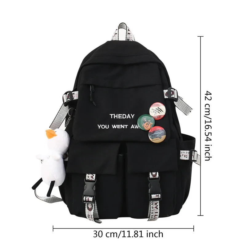 This backpack is perfect for female students with its large capacity and Japanese college style design. It is ideal for school or travel use.