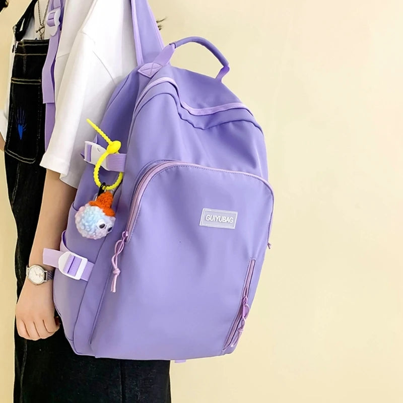 This nylon backpack is perfect for students and teenagers. It has a large capacity, ideal for carrying books, laptops, and other essentials. The backpack also features a pendant for added style.
