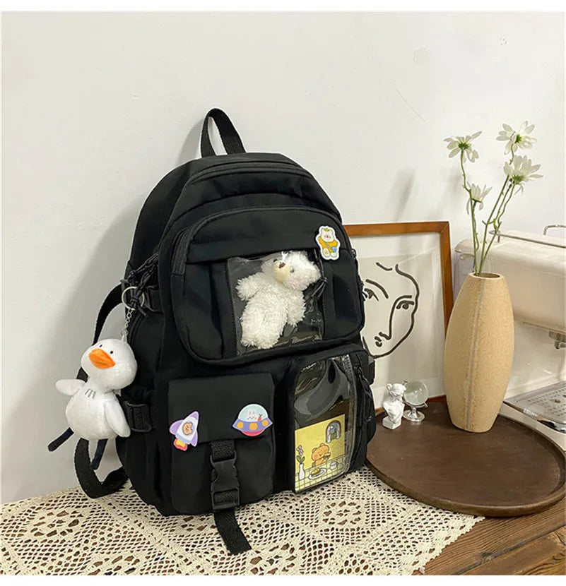 Description:This schoolbag is designed with a large capacity, waterproof material, anti-theft features, plush toy accessory, and suitable for girls.Features: Large capacity for school essentials Waterproof material for protection Anti-theft design for security Includes plush toy accessory Ideal for female students This product may be available in additional colours and sizes....