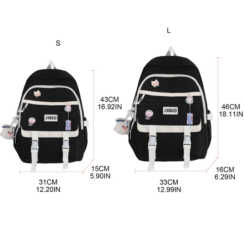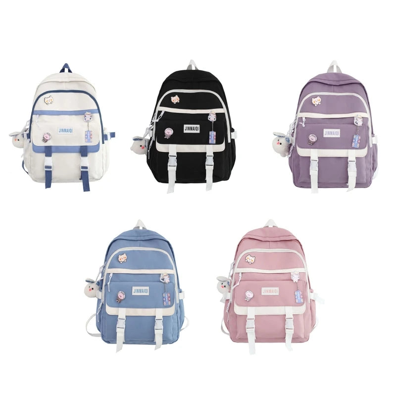 Description:This backpack is perfect for students and travelers. Made of durable nylon, it features a cute plush pendant and pin accessories. The spacious design allows you to carry all your essentials comfortably.Features: Durable nylon construction for long-lasting use Adorable plush pendant adds a touch of charm Comes with pin accessories...