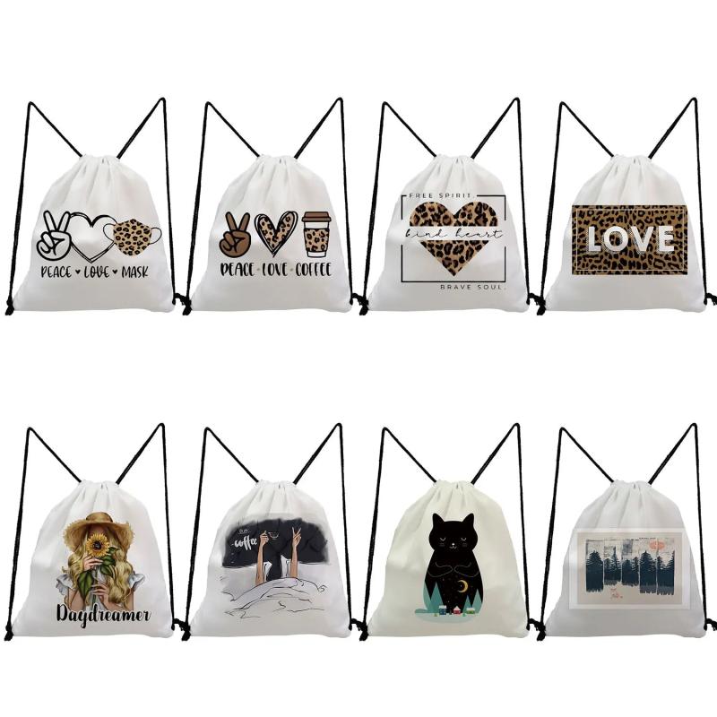 Get ready for school with this eco-friendly drawstring backpack featuring a stylish leopard print and lettering. It has a high drawstring pocket for your essentials.